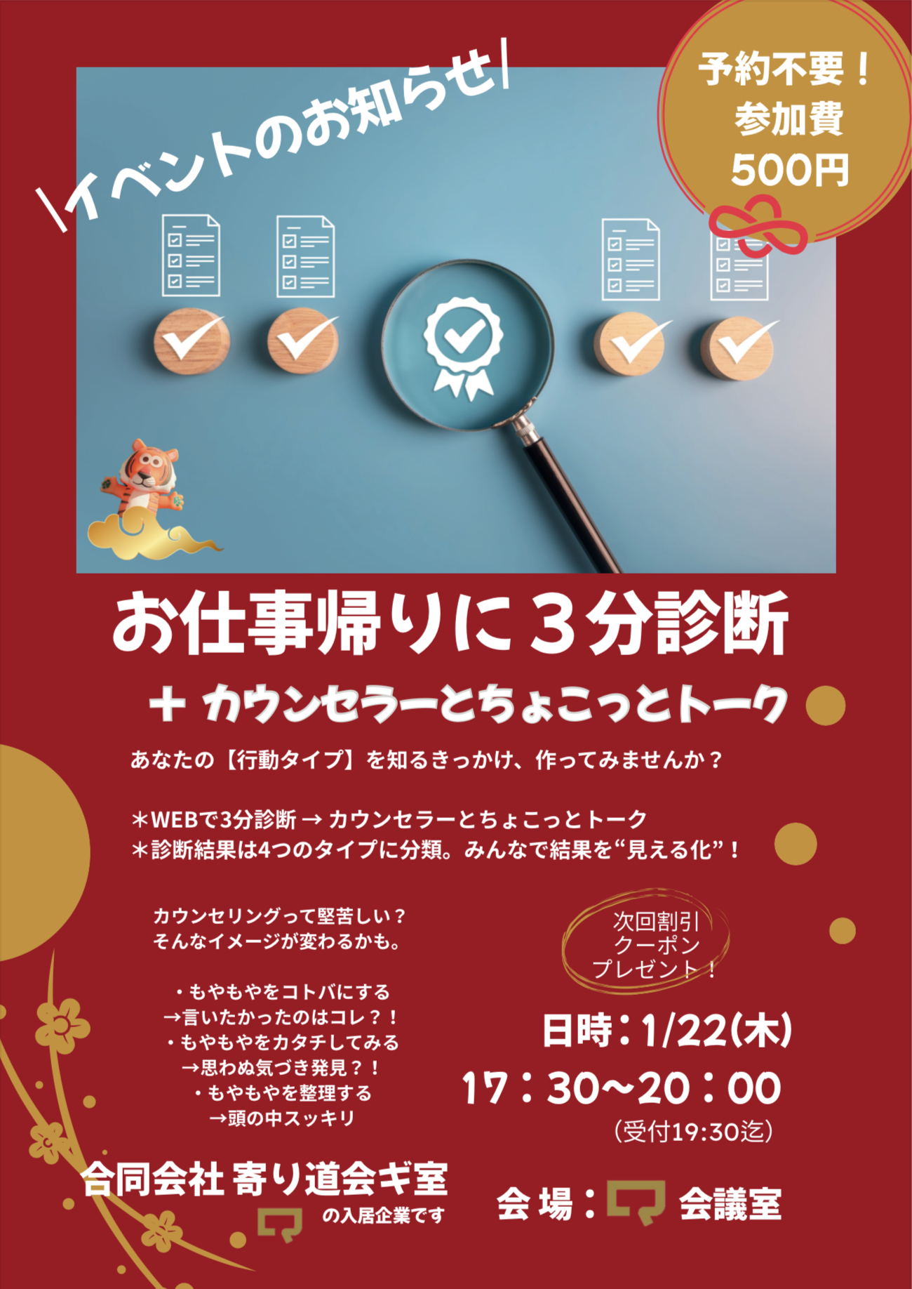 🟡 日時:1月22日(木)17:30〜20:00 ※最終受付19:30
